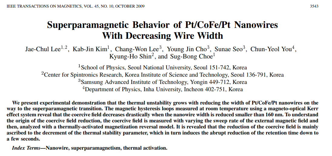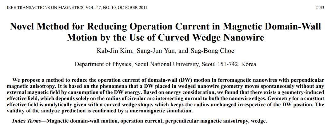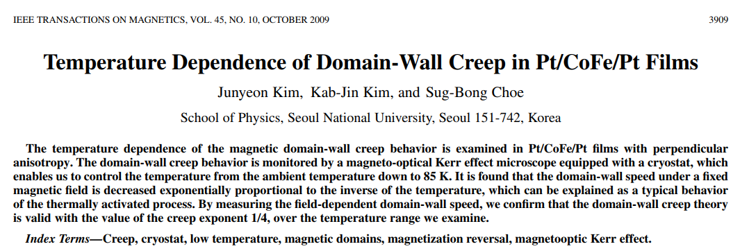 결과적으로 ETH Zurich 의 Gambardella 그룹에서 (실험까지 다 해서) 논문이 먼저 나와 아쉬웠지만, 남는 것이 아주 없지는 않았다. DW motion에 대한 공부도 많이 되었고, 국내 및 PCT 국제 특허에 출원도 된 상태 (10-2020-0011870 & PCT/KR2020/006967, ‘자구벽 논리소자 및 이의 제조방법’)이며, Journal of Magnetics 에 표지논문으로 개제가 되어서 불행 중 다행이라 생각한다. 마지막으로, 연구를 같이 진행한 교수님과, 도움을 주신 많은 분들께 감사의 인사를 전하며 해설을 마치도록 하겠다.