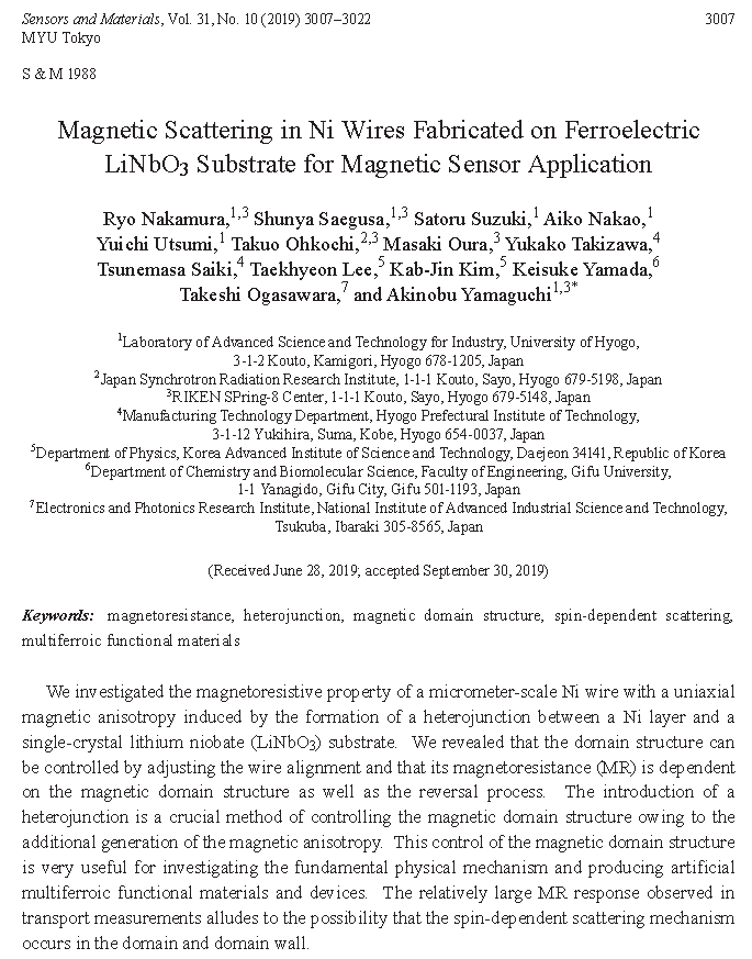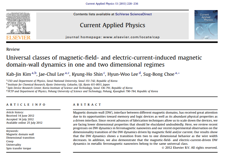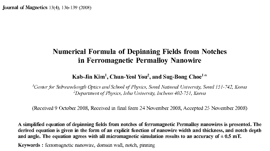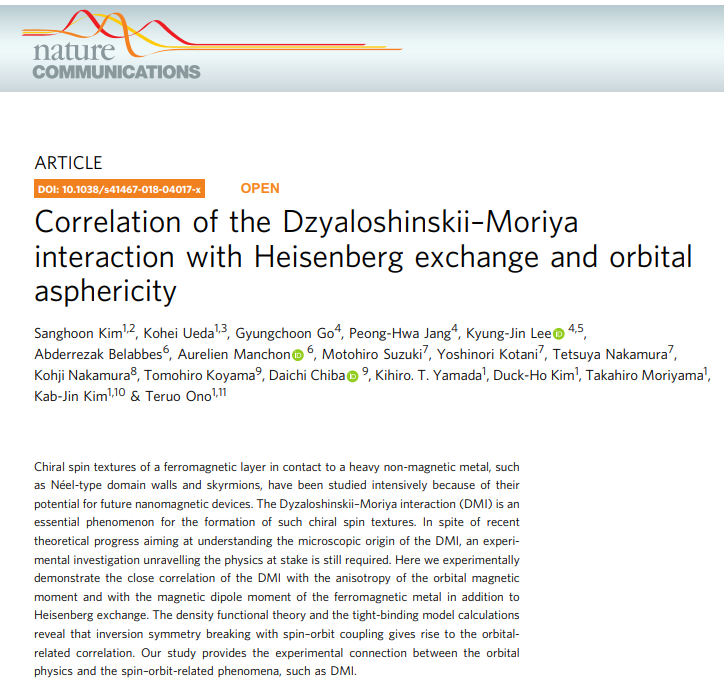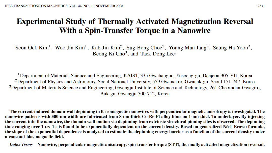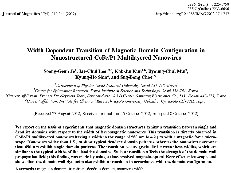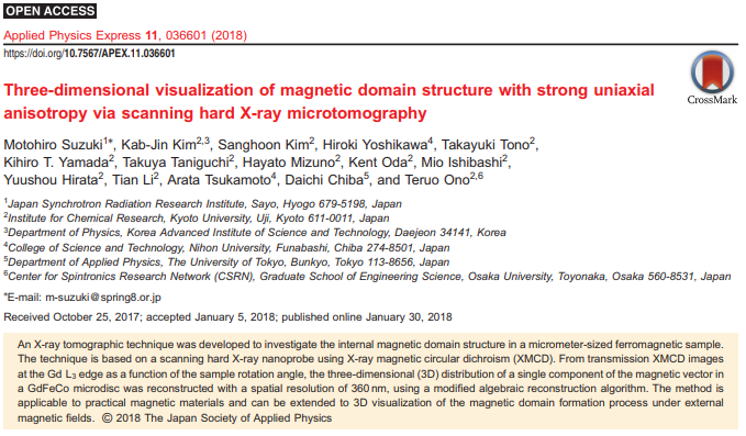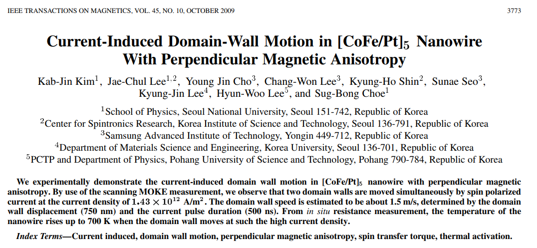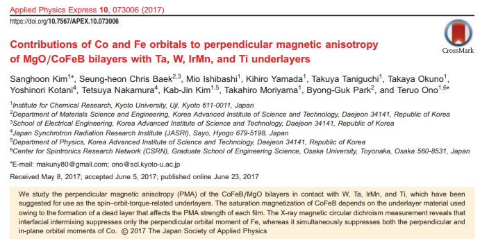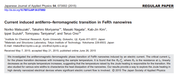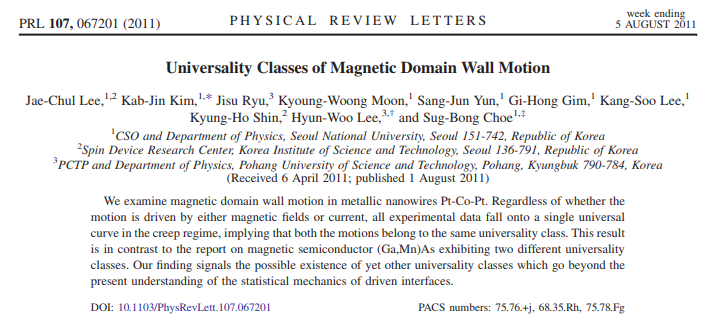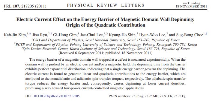 Takaya Okuno, Duck-Ho Kim, Se-Hyeok Oh, Se Kwon Kim, Yuushou Hirata, Tomoe Nishimura, Woo Seung Ham, Yasuhiro Futakawa, Hiroki Yoshikawa, Arata Tsukamoto, Yaroslav Tserkovnyak, Yoichi Shiota, Takahiro Moriyama, Kab-Jin Kim, Kyung-Jin Lee & Teruo Ono