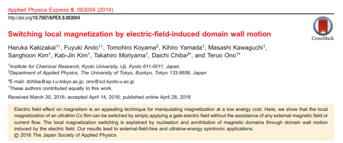 Takuya Taniguchi, Tomohiro Koyama, Kyoung-Hoon Kim, Daichi Chiba, Kab-Jin Kim, Teruo Ono