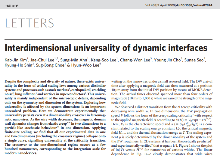 “원래 정지해 있는 자구벽에서는 위상학적 홀 효과가 나오지 않는데, 자구벽이 움직일 때는 그것이 나올 수도 있다”