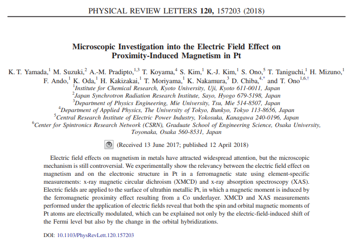 K. T. Yamada, M. Suzuki, A.-M. Pradipto, T. Koyama, S. Kim, K.-J. Kim, S. Ono, T. Taniguchi, H. Mizuno, F. Ando, K. Oda, H. Kakizakai, T. Moriyama, K. Nakamura, D. Chiba and T. Ono