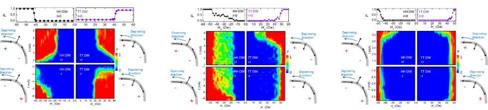 당연한 이야기겠지만, 모든 소자에는 작동 범위가 존재한다. 이를 알아보기 위해, 본 연구에서는 소자에 인가하는 전류 밀도를 고정한 채로 wire width, IMA 영역 및 DMI strength 를 바꾸면서 소자 동작을 테스트하였다. 결과를 간단하게 요약하면, 소자의 DMI strength 가 주어지면 동작할 수 있는 IMA 영역의 길이가 거의 정해지고, 이 값이 커질수록 소자가 성공적으로 작동하는 IMA 길이의 범위가 넓어진다는 것이다. [FIG.2]