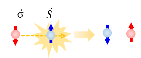 자성 물질 내부에서 spin-flip이 일어난다고 하는 것은, majority band에서 minority band로 전자가 이동한다는 것이고, 이러한 프로세스에는 반드시 에너지와 운동량보존, 그리고 각운동량 보존이 수반되어야 한다. 기존에 보고된 문헌값을 이용하면, 이 때 수반되는 운동량 변화량은 $ 10^{-9} m^{-1} $정도 된다. 당구공이 부딪히면 운동량을 교환하듯이, 두 스핀이 상호작용해서 운동량을 교환하는데, 그 크기가 $ 10^{-9} m^{-1} $정도 된다는 것이다.