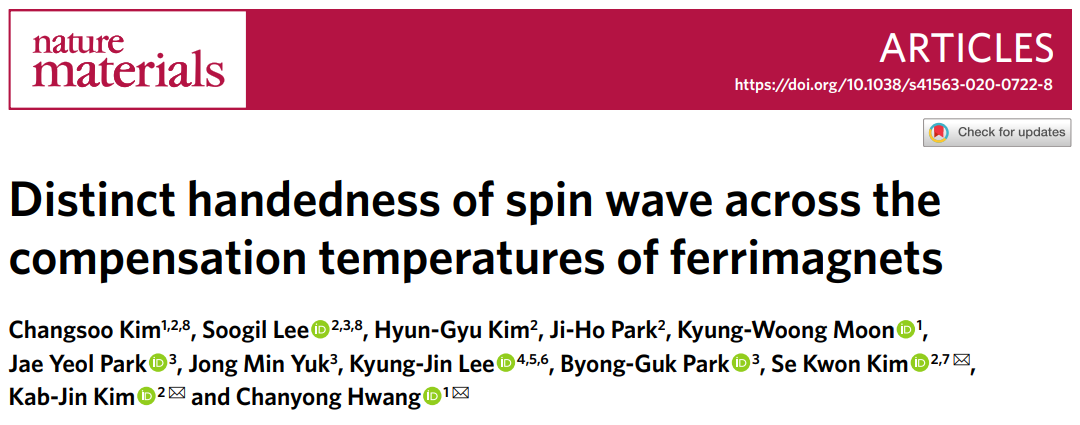 Kim, C., Lee, S., Kim, H. et al. Distinct handedness of spin wave across the compensation temperatures of ferrimagnets. Nat. Mater. (2020). https://doi.org/10.1038/s41563-020-0722-8