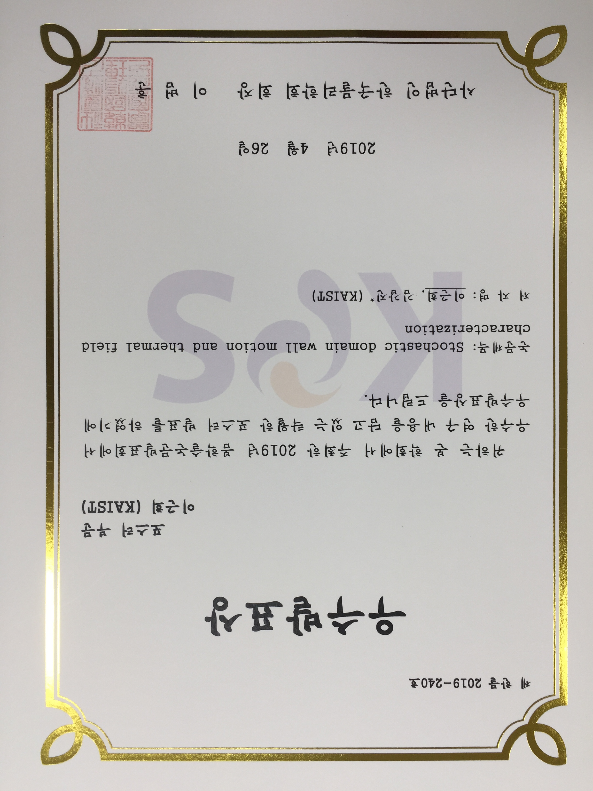 이근희 학생이 2019 한국 춘계 물리학회 포스터 발표 부문에서 우수상을 수상했습니다! 축하합니다!