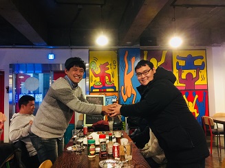 오랜만에 회식하러 갔습니다. 일본에서 단기 교환학생으로 온 노무라상, 한국에 온 걸 환영합니다!