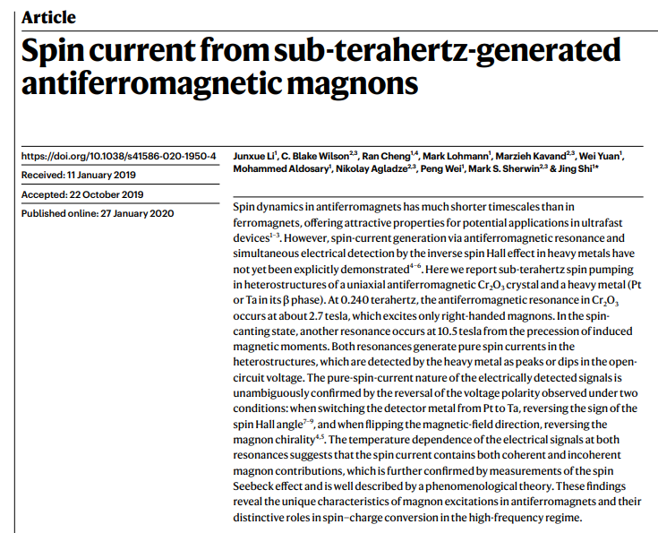 - B. Jungfleisch, W. Zhang and A. Hoffmann, Physics Letters A 382, 865 (2018).