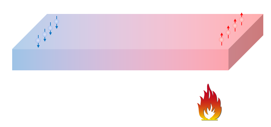 생각해보면, 우리는 지금 “스핀의 흐름”에 대해서 얘기하고 있다. 세상에 존재하는 어떠한 흐름이라는 것은 등방성이 깨어졌을 때 일어난다. 구름이 왜 흘러가며, 강물은 왜 흘러가는가? 압력의 차이가 있고, 에너지의 차이가 발생했기 때문이 아닌가? 자 그렇다면 이런 생각은 어떤가? “막대의 한쪽은 뜨겁게, 다른 한쪽은 차갑게 한다면?” 이러한 상황은 이미 100년도 전에 사람들이 답을 구해두었다. 정답은, “전류가 흐른다” 이다. 전자는 어느 방향으로든 갈 수 있지만, 뜨거운 곳과 차가운 곳은 운동에너지가 다르므로, 전자는 평균적으로 뜨거운 곳에서 차가운 곳으로 이동하게 된다. 이런걸 Seebeck effect라고 한다. 자, 이쯤 되면 여러분은 내가 무슨 질문을 하고자 하는지 알 것이다. “물체의 양단을 뜨겁고 차갑게 하였을 때, 스핀의 흐름은 어떻게 되는가?”