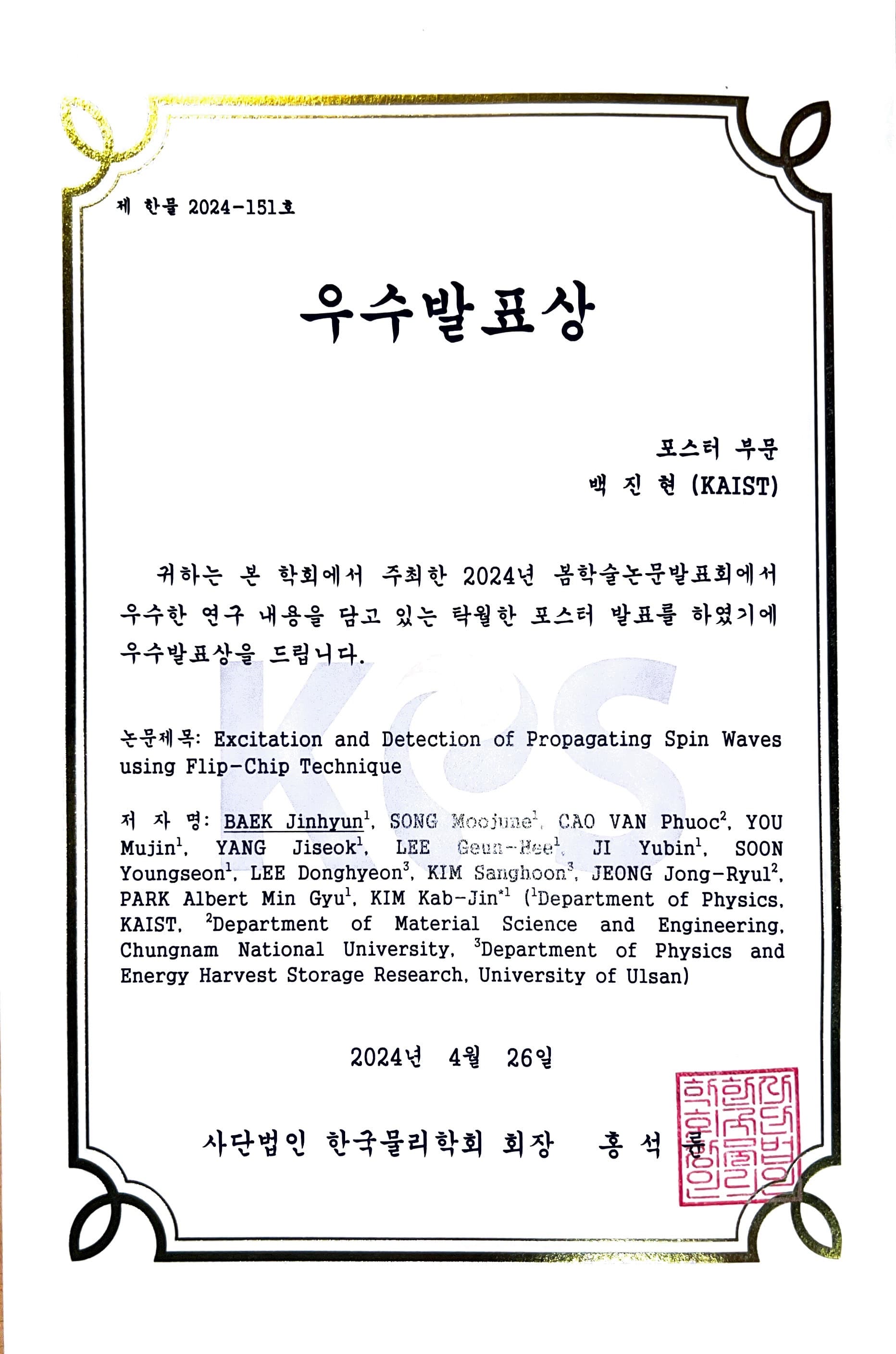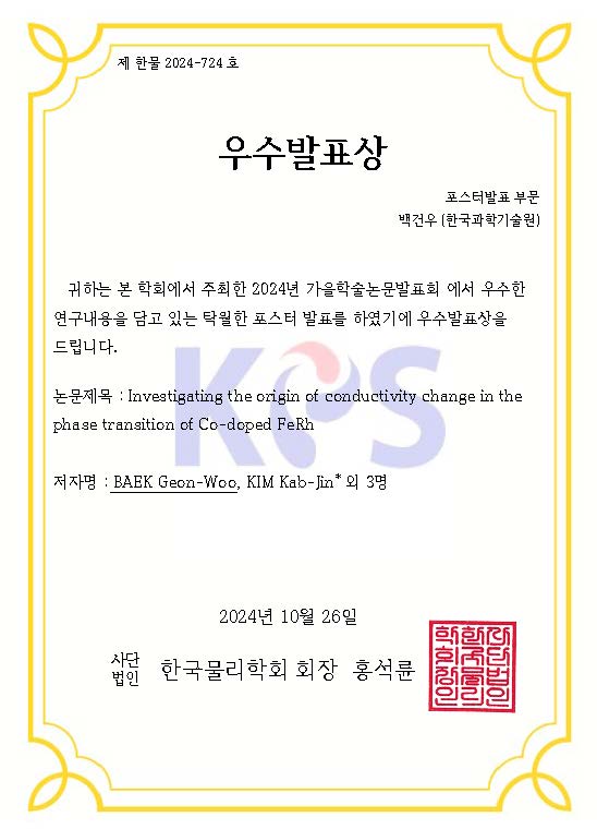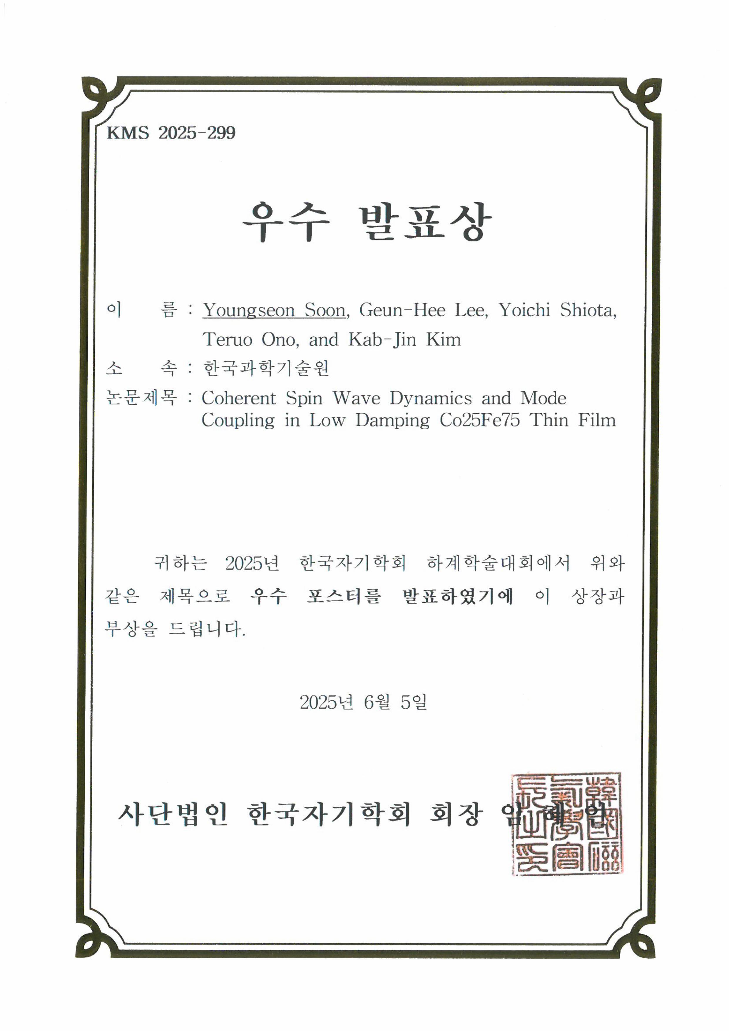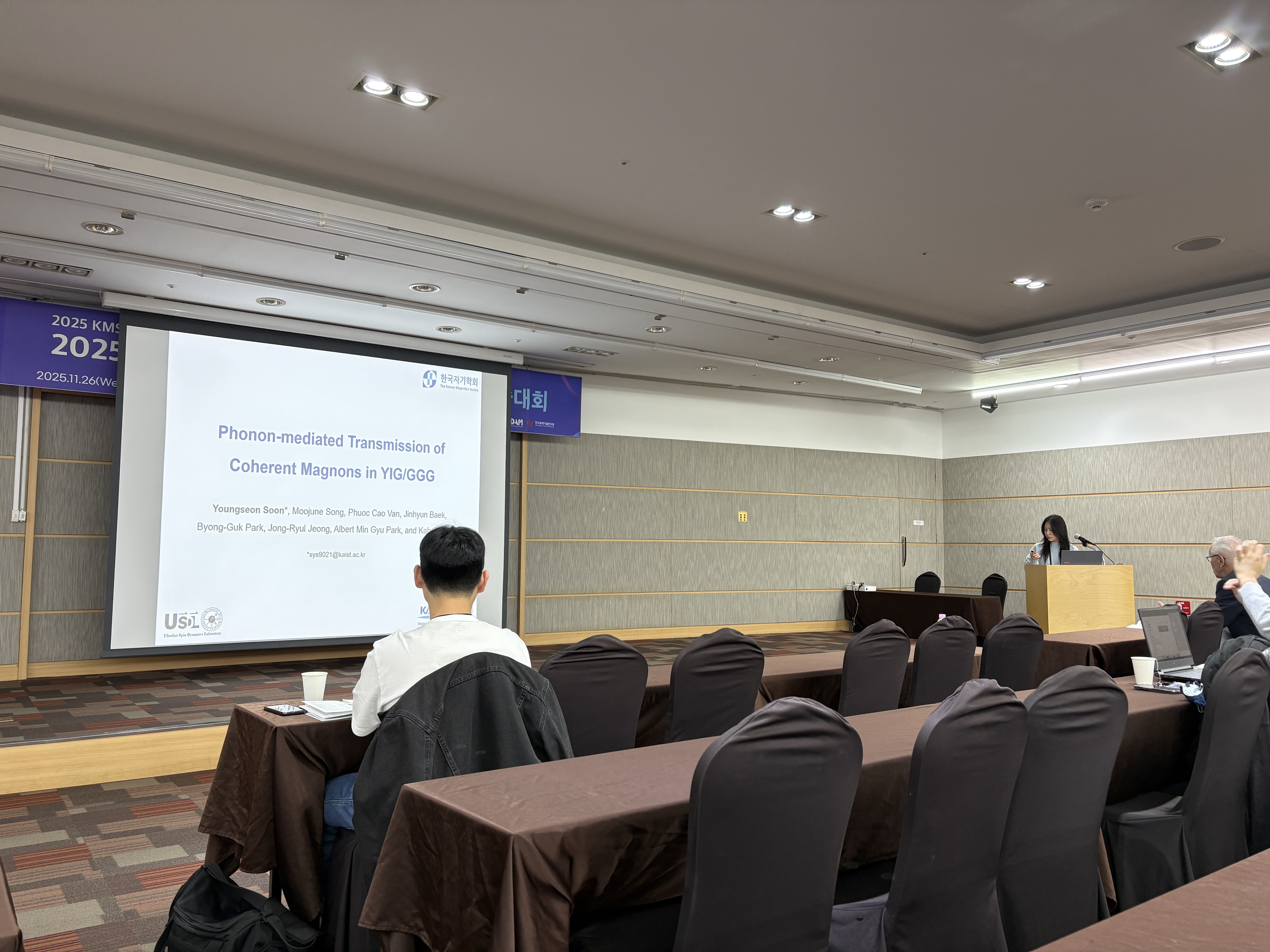 We attended 2025 KMS Winter Conference held in Busan. Youngseon Soon, Do Kyeong Nam, and San Ko gave an oral presentation and Geon-Woo Baek, Seyeob Jeong, and Yubin Ji presented poster! We had a joyful and rewarding experience eating a lot of delicious foods of Busan and communicating with other laboratorys about various topics. Congratulations to Geon-Woo Baek on receiving the Best Poster Presentation Award, and to Seyeop Jeong, the raffle winner!!!🎇🎉