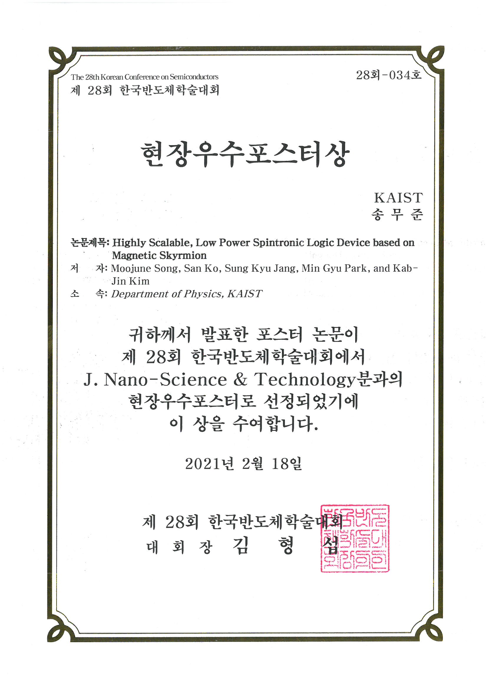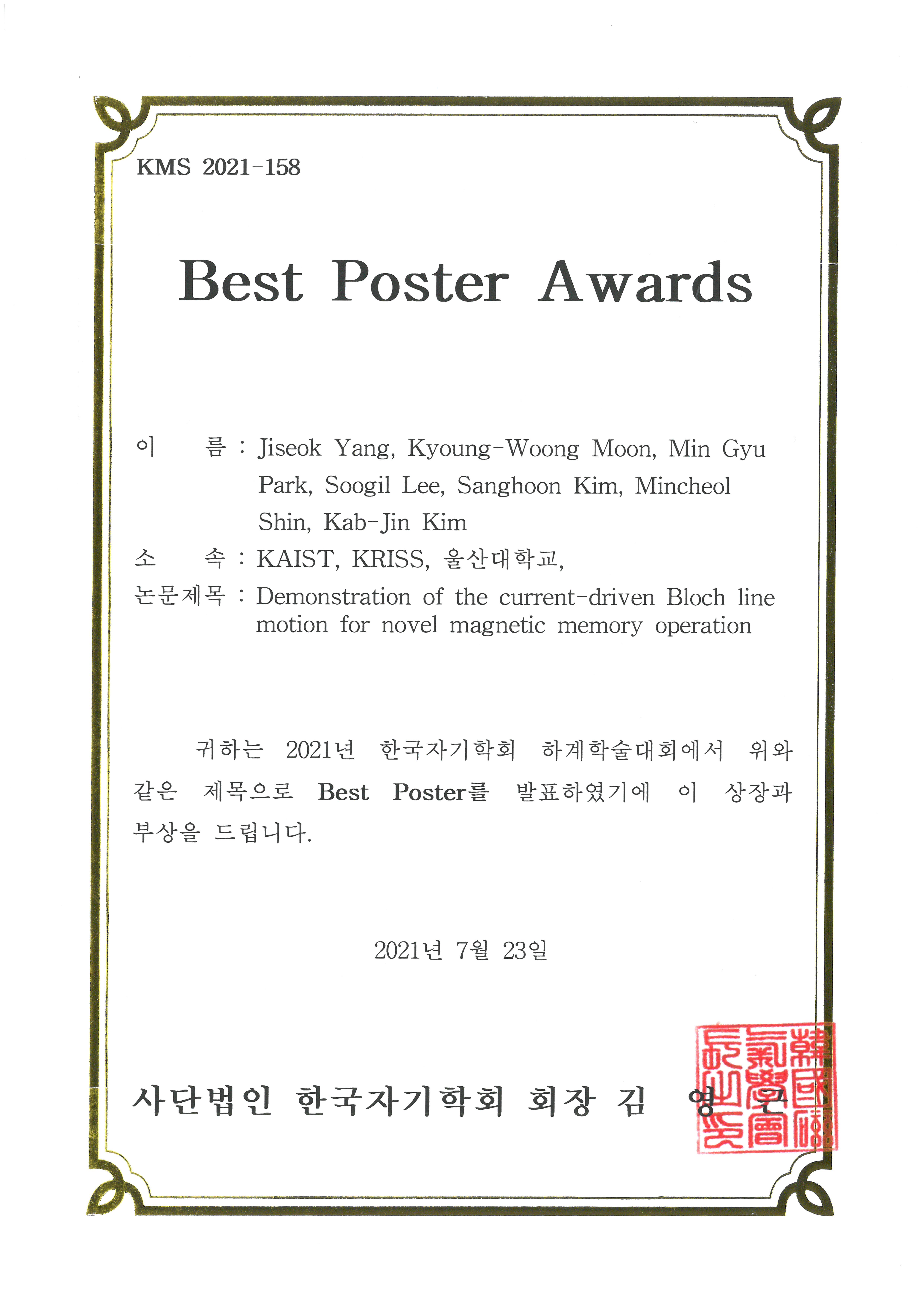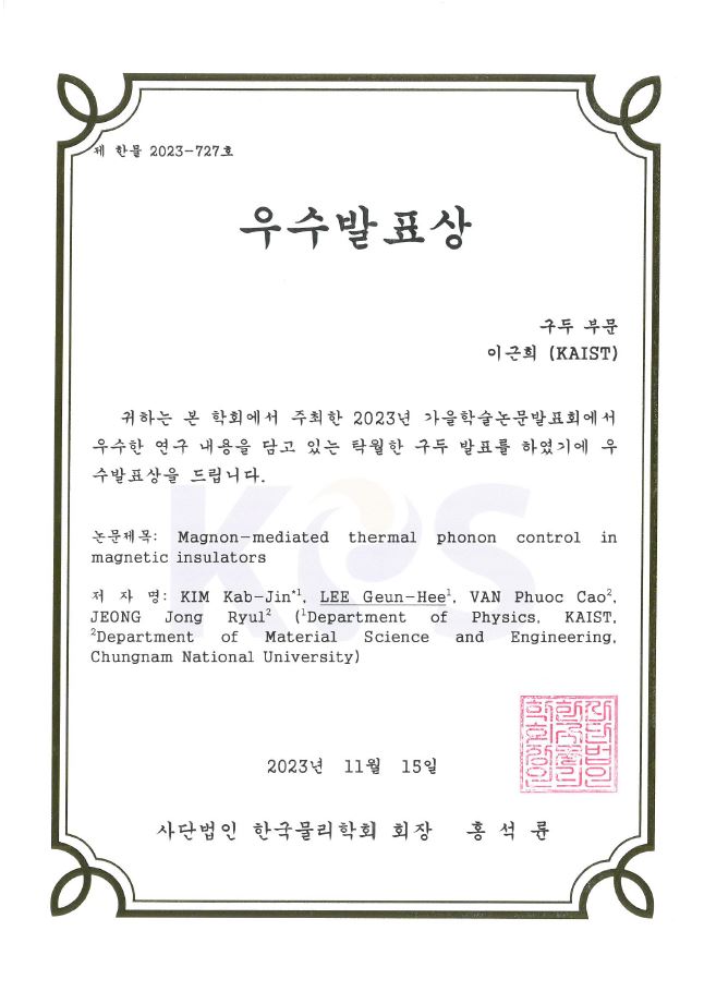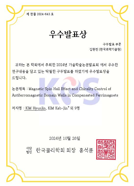 We attended 2025 KMS Winter Conference held in Busan. Youngseon Soon, Do Kyeong Nam, and San Ko gave an oral presentation and Geon-Woo Baek, Seyeob Jeong, and Yubin Ji presented poster! We had a joyful and rewarding experience eating a lot of delicious foods of Busan and communicating with other laboratorys about various topics. Congratulations to Geon-Woo Baek on receiving the Best Poster Presentation Award, and to Seyeop Jeong, the raffle winner!!!🎇🎉