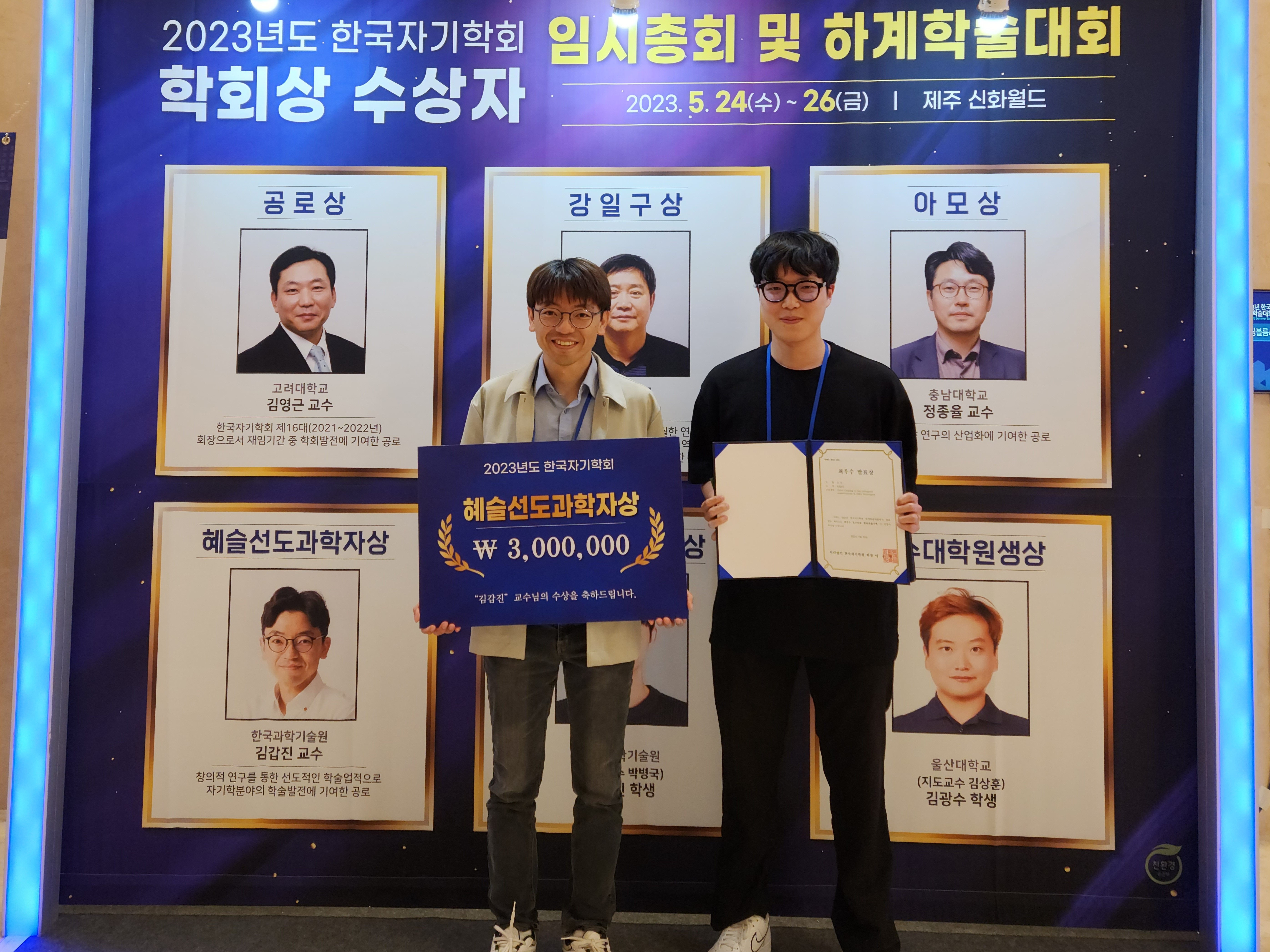 부산에서 열린 한국자기학회 동계학술대회에 다녀왔습니다. 순영선, 남도경, 고산 학생이 구두발표를 진행하였고, 백건우, 정세엽, 지유빈 학생이 포스터 발표에 참여하였습니다! 맛있는 것도 많이 먹고 여러 연구실 사람들과 다양한 주제로 소통하는 즐겁고 보람있는 시간이었습니다. 백건우 학생의 포스터 최우수 발표상 수상과 정세엽 학생의 경품 당첨 축하드립니다!!!🎇🎉