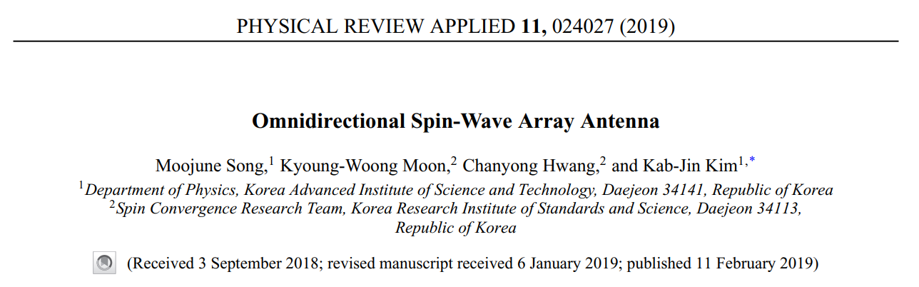 스핀파, spin wave는 자성체 내 스핀의 집단적인 떨림을 의미하는데, 간단히는 ‘자성체의 파동’이라고 이해할 수 있습니다. 이는 이중성을 가지고 있어서, 입자로서는 마그논(magnon), 파동으로서는 스핀파라고 불립니다. 도체를 가로질러 전자가 이동하는 전기 신호와는 달리, 스핀파는 인접한 스핀과 스핀 사이의 상호작용으로 마치 도미노처럼 전달되는 파동입니다. 따라서 정보 전달 시에 전류에 의한 줄열(Joule heating)이 최소화되어, 스핀파를 이용하면 기존 소자에 비해 매우 저전력으로 구동되는 소자를 만들 수 있습니다. 이에 수많은 스핀파 소자 연구가 진행되어 왔으나[1-3], 스핀파의 제어가 어렵다는 문제점이 있었습니다. 그 중 특히 스핀파의 진행 방향을 조절하는 것은 소자를 구현하는 데 핵심적인 부분이지만 물리적으로도, 공학적으로도 가장 도전적인 부분이었습니다. 이에 Y자 도파관을 만들어 스핀파의 경로를 선택한 연구[4], 줄무늬 자구 패턴을 자기장으로 변화시켜 스핀파의 방향을 전환한 연구[5] 등이 보고되었습니다. 그러나 이들 연구에는 영구적인 소자의 패터닝이 필요해 선택 가능한 방향이 제한되거나, 스핀파의 방향에 따라서 세기가 달라지고 자기장의 보조가 필요하다는 문제점이 존재합니다. 본 연구에서는 이러한 모든 문제를 해결할 수 있는 새로운 아이디어인 ‘스핀파 위상배열 안테나(spin wave phased array antenna)’를 제안합니다.