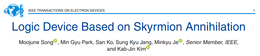 여지껏 해 오던 skyrmion에 대한 시뮬레이션 연구의 방향을 살짝 틀어서, 이번에는 전통적인 전자공학 소자 저널인 IEEE Transactions on Electron Devices에 논문을 실어 보았습니다.