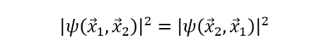 두 입자를 구분할 수 없기 때문에, 두 입자의 시스템을 설명하는 확률분포는 두 입자의 교환 (exchange)에 대해 불변이여야 한다. 즉 (파동함수 (wavefunction)의 언어로)