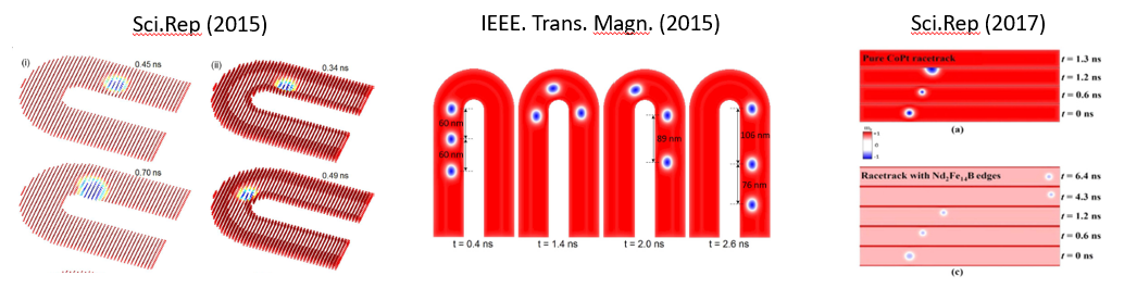 Skyrmion (magnetic skyrmion)은 가히 spintronics에서 가장 핫하다고 할 수 있을 만큼 학계에서 엄청난 주목을 받고 있는 연구 주제이다. 물리학에서 노벨상급으로 중요한 개념인 topology를 topological charge의 형태로 내포하면서, 동시에 관측이 가능한 physical object이기 때문이다. 과장 좀 보태면, ‘수학 세계에만 존재하는 것 같던 개념이 현실 세계에서 살아 움직이는’ (준)입자라고 할 수 있다. 여기에 한술 더 떠서, 이 skyrmion은 전류를 흘려 주면 그 방향으로 움직이기 때문에 전자 소자로의 응용 가능성이 무궁무진하다. GMR의 발견으로 2007년 노벨상을 수상했던 Albert Fert는 2013년 Nature Nanotechnology지에 ‘Skyrmion on the track’이라는 논문을 발표한다. 이 논문에서 그는 40 nm 폭 track에서 skyrmion이 전류로 이동하는 것을 micromagnetic simulation으로 보임으로써 메모리, 로직 소자를 만들 수 있음을 주장했다. 이 논문은 2021년 4월 현재까지 총 2151회의 인용수를 기록하며, 지금의 수많은 skyrmion 응용 연구를 있게 한 시발점이 되었다.